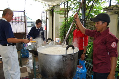 Relawan bahu-membahu bersama warga menyiapkan nasi bungkus untuk para korban banjir.Fotografer : Sintï½ã€€ï¼¦ï½…briyï½ï½Žï½‰ã€€ï¼ˆï¼´ï½šï½• Chi Bï½ï½Žï½„ung)