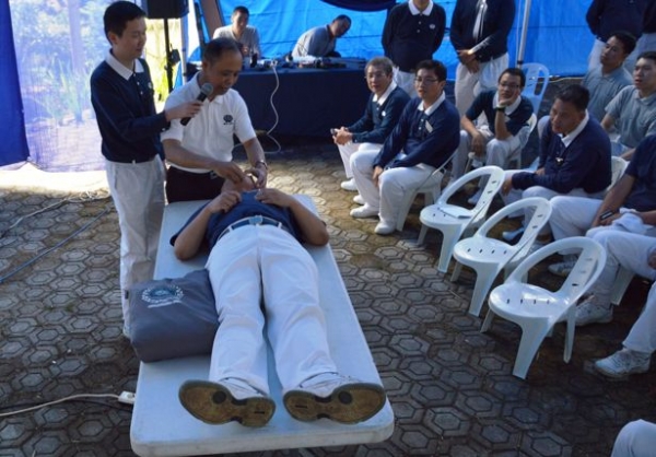 PERTOLONGAN PERTAMA. Dr. Tonny Christianto memeragakan cara memeriksa denyut nadi dalam sesi pertolongan pertama saat terjadi bencana. Menurutnya, meski insan TTD Tzu Chi tak memasuki daerah bencana untuk melakukan pencarian dan evakuasi, namun, pengetahuan akan pertolongan pertama perlu dipahami anggota TTD Tzu Chi agar dapat melakukan pertolongan ketika diperlukan.Fotografer : willy