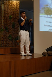 Pinnie Johan, salah satu relawan biru putih dari Medan yang dilantik pada hari itu memberikan sharing mengenai penggalangan dana yang dilakukannya selama 4 tahun yang berhasil mengumpulkan lebih kurang 1.100 donatur.Fotografer : Veronika