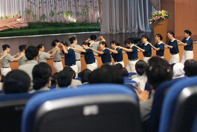 Relawan Tzu Chi bersama-sama berdoa dengan menyanyikan “Cheng Xing Qi San Yuanâ€. Berikrar semoga dunia bebas dari bencana dan penderitaan, masyarakat harmonis tanpa pertikaian, hati manusia tersucikan.Fotografer : Stephen Ang (He Qi Utara)