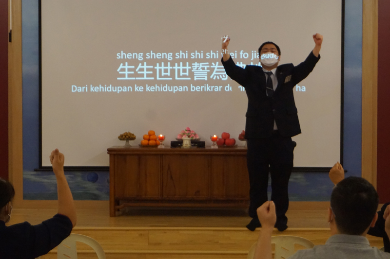 Acara ditutup dengan pemukulan genderang oleh para pengurus He Xin, He Qi, Hu Ai, Xie Li Tzu Chi Indonesia.