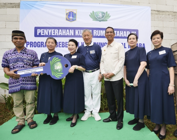 Bersama dengan relawan Tzu Chi dan PJ Gubernur DKI Jakarta Heru Budi Hartono, Rahmat Kamal mewakili Ibu Mursinah (penerima rumah) berfoto bersama.