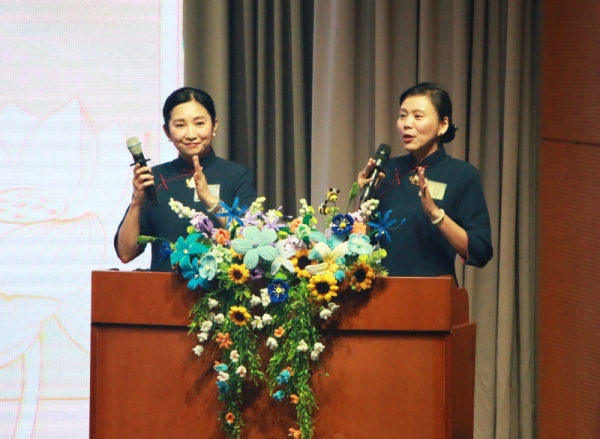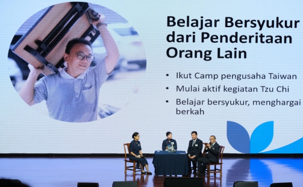 Tim relawan Tzu Chi Batam memberikan sharing tentang pengalaman memegang tanggung jawab dalam dunia kerelawanan Tzu Chi.