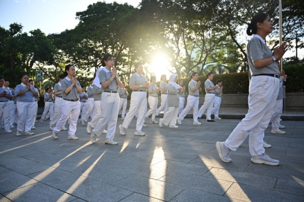 Pada pagi di hari ke-2 kamp pelatihan, peserta melakukan Meditasi Jalan di lapangan Teratai, Tzu Chi Center, PIK, Jakarta Utara.