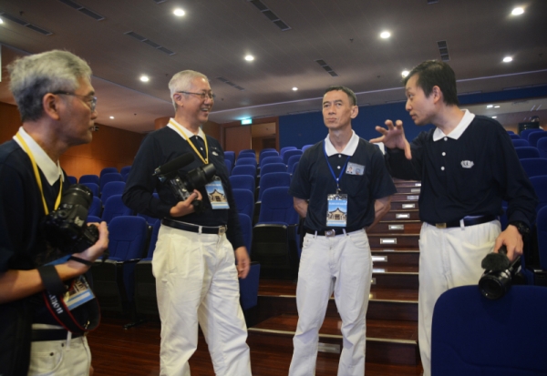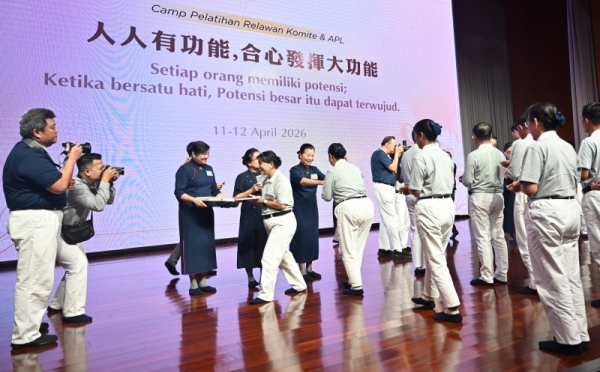 Relawan Zhen Shan Mei (relawan dokumentasi) berkoordinasi saat melakukan peliputan Kamp Pelatihan Relawan Komite dan APL 2026.
