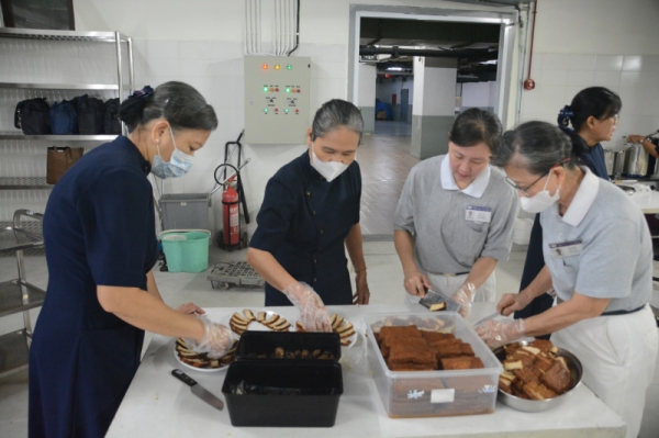 Tim relawan konsumsi saat menyiapkan makanan untuk para peserta dan panitia yang bertugas pada kegiatan kamp pelatihan.