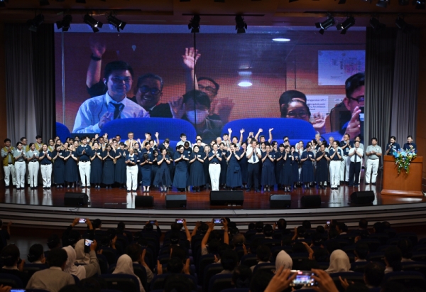 Semua panitia yaitu relawan Tzu Chi yang bertugas mulai dari alur, logistik, dokumentasi, pemateri, pembawa acara, dan lainnya, naik ke atas panggung dan diberikan apresiasi oleh para peserta kamp pelatihan.