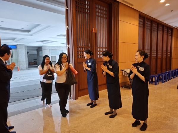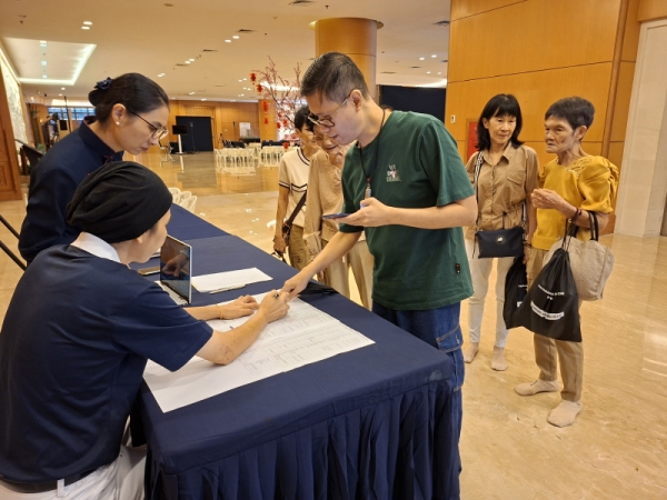 Kehangatan acara kian terasa saat para relawan menyambut kedatangan tamu di lobi Ci Bei dengan sapaan ramah dan sikap penuh hormat, menjadi pembuka jalinan jodoh baik yang penuh sukacita.