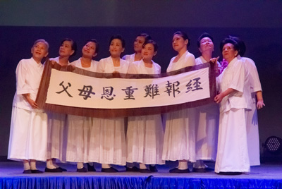 Para relawan Tzu Chi yang tergabung sebagai satu keluarga, menghimpun berkah dalam bentuk pementasan Drama Musikal Sutra Bakti Seorang Anak.Fotografer : Kurniawan (He Qi Timur)