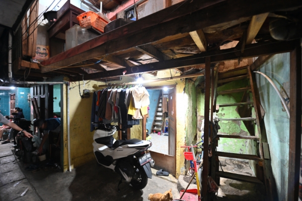 Salah satu kondisi rumah di wilayah RW 12 Kelurahan Tanah Tinggi yang kondisinya gelap karena sinar matahari tidak dapat masuk ke dalam rumah dan udara pengap akibat tidak ada sirkulasi udara yang baik dalam rumah-rumah yang saling berhimpitan.