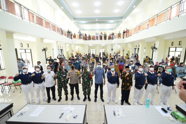 yang sudah diatur jarak fisiknya agar warga dan relawan tetap menjalankan protokol