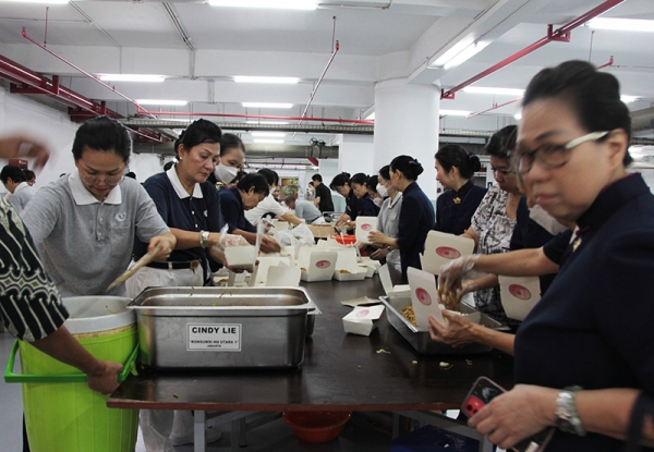 Konsumsi yang sudah selesai dimasak kemudian ditempatkan dalam wadah dan disusun rapi yang nantinya akan dibagikan kepada setiap peserta peringatan Waisak 2024 di Tzu Chi.