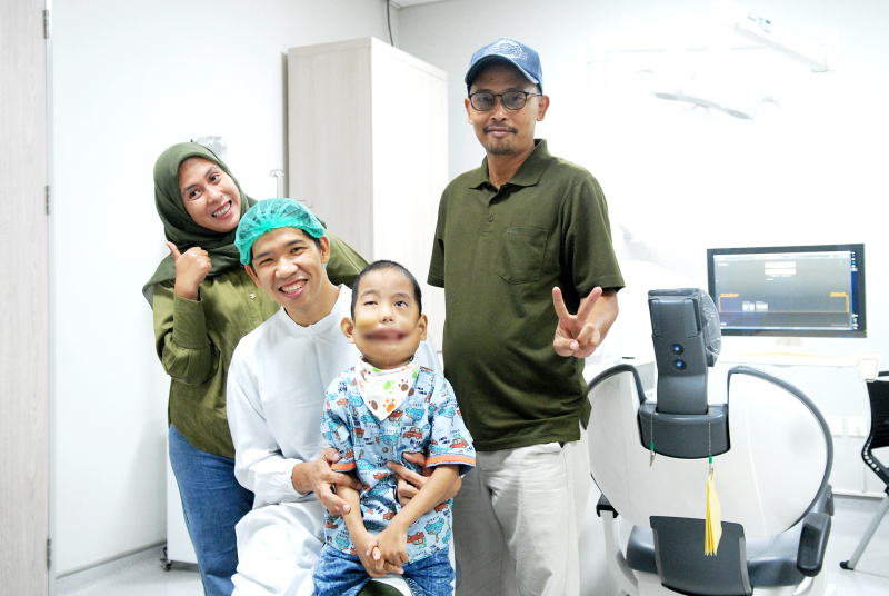 “Sejak alat itu dipasang, rahang bawah Abidzar perlahan maju. Total pertambahan panjangnya tiga sentimeter,” jelas drg. Henri. “Kini setelah dilepas, tulangnya padat seperti tulang normal.”