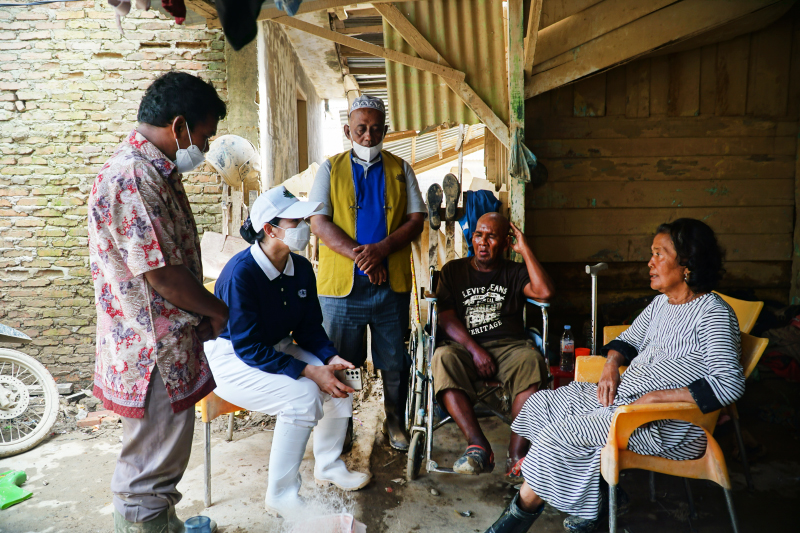 Di sela baksos kesehatan, Sylvia Chuwardi ditemani relawan lainnya menyempatkan diri hadir ke rumah waga yang kesulitan datang ke lokasi baksos untuk memberikan dukungan mental