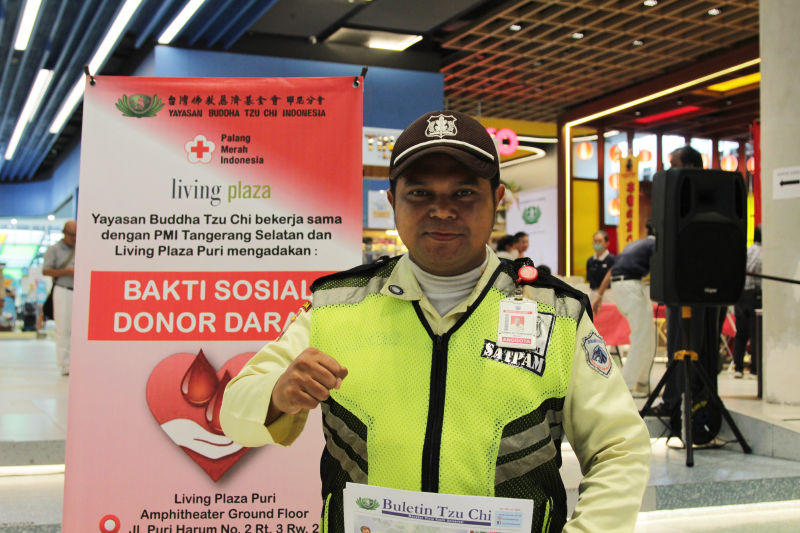 Relawan Tzu Chi bekerjasama dengan PMI melakukan kegiatan donor darah di Living Plaza Puri, Jakarta Barat.
