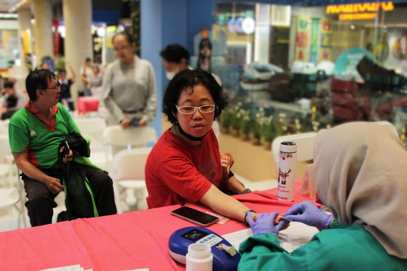 Sherly, salah satu pendonor, diperiksa kesehatannya oleh tim medis sebelum melakukan donor darah.