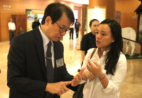 Tien-Mu Sun, supervisor salah satu organisasi non-profit di Taiwan sedang bertanya tentang perkembangan Tzu Chi di Indonesia.