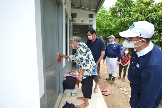 Edi Sheen dan relawan Tangerang dari Desa Simpak Jagabaya yang mendampingi bedah rumah menyerahkan kunci rumah kepada Nenek Cun Nyoh pada 6 Februari 2021.
