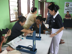 Setelah pemberian kata sambutan dari Ketua RW 05 dan Suherman Shixiong selaku panitia, baksos pun dimulai. Dengan dibantu oleh Dr. I.B. Darmasusila, Dr. Jimmy, Dr. Johan, Dr. Fiedyawati, Sp.KK, Dr. Andre dan belasan apoteker dari TIMA sehingga kegiatan baksos pun berjalan lancar. Pasien dengan sabar dan tertib mengantri. Adapun pasien kebanyakan adalah lansia, ibu, dan anak - anak yang kebanyakan terserang flu dan demam. Seperti yang dialami oleh Ibu Annisa (33 tahun) dan anaknya Nanda (6 tahun) yang terkena flu saat banjir. Ibu Annisa merasa bersyukur dengan adanya baksos kesehatan ia dapat berobat gratis. Begitu pula dengan Ibu Nursinah (50 tahun) yang datang bersama cucunya juga terjangkit flu setelah banjir masuk ke dalam rumahnya. Selain terkena flu, adapula warga yang terkena gatal - gatal, kutu air, dan penyakit lainnya. Selama baksos berlangsung, pasien dilayani sebaik mungkin oleh para relawan yang tak henti - hentinya mengedarkan makanan ringan, air mineral, dan menyediakan makan siang untuk pasien. Pukul 14.05 kegiatan baksos telah selesai. Sebanyak 466 pasien mendapat pengobatan gratis pada baksos kali ini. Sebelum selesai Bapak Muslim berharap agar suatu saat relawan Tzu Chi dapat mengadakan sosialisasi mengenai kebersihan lingkungan dan kondisi tanggap banjir bagi warga. Hal ini sesuai dengan kata perenungan yang pernah diungkapkan Master Cheng Yen " Amal kemanusiaan dan amal pengobatan merupakan kegiatan nyata, sedangkan pendidikan dan kebudayaan adalah suatu konsep, akan bermakna besar bila terdapat keselarasan antara kegiatan nyata dan konsep " . | |||