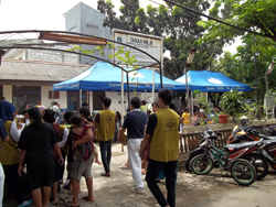 Kesiapan Relawan Hari itu sebelum baksos kesehatan dimulai, Widyanti bersama dua orang relawan sudah bersiap-siap untuk memasak di dapur Rumah Sakit Khusus Bedah (RSKB) Cinta Kasih Tzu Chi. Meski relawan lain belum datang mereka langsung bekerja menyiapkan kompor, mencuci sayuran dan memotongnya. Semua dikerjakan dengan tangkas, cepat, dan rapi. Maka ketika jarum jam mendekati pukul 11 siang semua masakan sudah dikemas menjadi 600 bungkus untuk didistribusikan ke dua lokasi baksos kesehatan. Widyanti menerangkan kalau kerja di Tzu Chi (menjadi relawan) telah memberikan kebahagiaan dan tanggung jawab kemanusiaan. Maka selagi Tzu Chi di komunitasnya masih memberikan bantuan, selama itu pula ia akan terus bertugas di bagian konsumsi. Di Tzu Chi memang banyak relawan yang turut terkena musibah banjir. Ada yang rumahnya terendam banjir, ada pula yang tempat usahanya terendam, tapi semua itu tak menyurutkan niat para relawan untuk bersumbangsih bagi masyarakat. Bagi mereka urusan pribadi bisa cepat diatasi, sesudah itu menolong orang lain jauh lebih penting. | |||