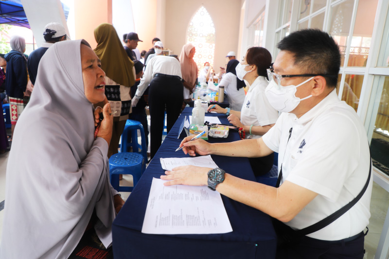Relawan Tzu Chi mendampingi warga terdampak bencana saat diperiksa kesehatannya oleh tim dokter TIMA di Kelurahan Rantau Pauh, Kecamatan Rantau, Kabupaten Aceh Tamiang.