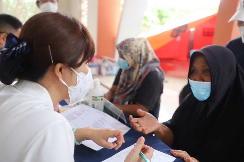 Nenek Ponira, salah satu warga yang terdampak banjir, berkonsultasi dengan dengan tim dokter TIMA. Ia mengeluhkan gatal-gatal di seluruh badannya.