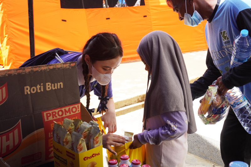 Relawan muda Tzu Ching Medan membagikan kebutuhan darurat kepada warga, sebagai bentuk kepedulian dan dukungan untuk meringankan beban masyarakat Desa Lubuk Sidup.