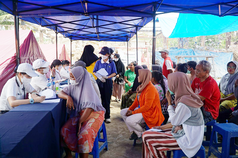 Elvi, koordinator kegiatan, menjelaskan bahwa bakti sosial kesehatan ini menyasar wilayah yang belum terjangkau layanan medis. “Kami memilih lokasi posko pengungsian, tempat warga tidak bisa kembali ke rumah karena kerusakan yang parah. Kami datang untuk meringankan penderitaan mereka,” ucap Elvi.