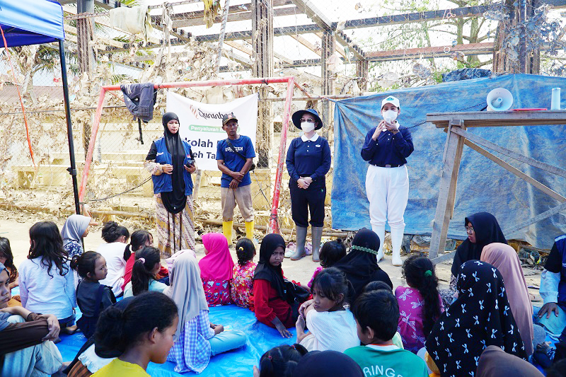 “Anak-anak sempat trauma karena banjir datang tiba-tiba. Kondisi belajar saat ini memang tidak maksimal, tetapi mereka tetap semangat meski sangat terbatas. Kami berharap gedung sekolah segera diperbaiki agar proses belajar kembali normal. Kehadiran relawan memberi semangat baru bagi mereka,” tutur Tika.
