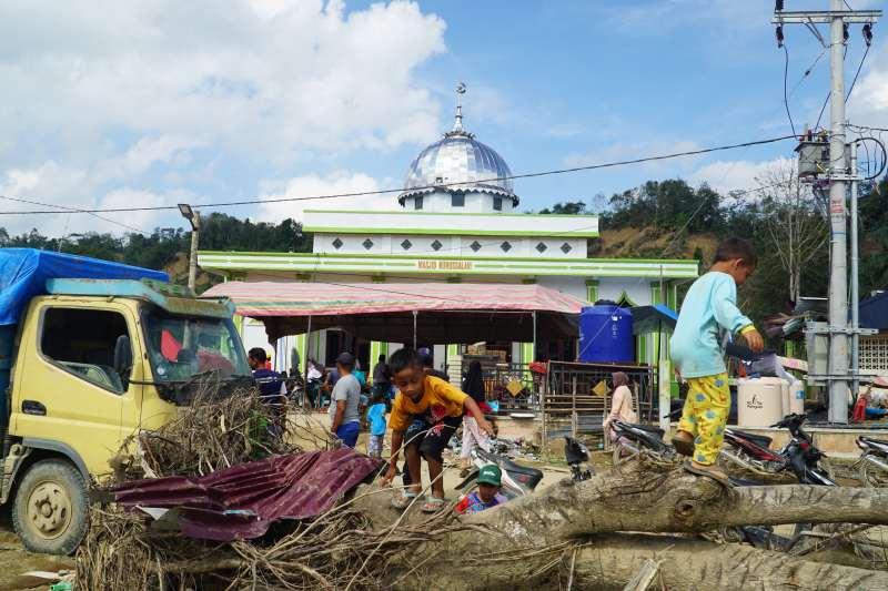 Kondisi Masjid Nurussalam, Desa Lubuk Sidup, Kecamatan Sekerak pascabencana banjir bandang yang melanda. Relawan Tzu Chi menyalurkan bantuan untuk warga dan jemaah Masjid Nurussalam berupa perlengkapan ibadah dan terpal goni.