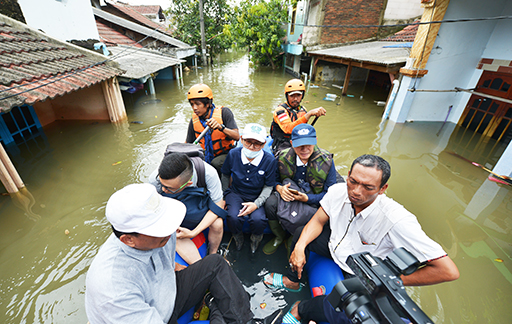Relawan juga mengunjungi lokasi perumahan yang terendam air setinggi 3 meter di Kecamatan Periuk, Kota Tangerang.