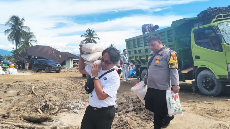 Selain menyerahkan bantuan sembako, relawan juga memeriksa kondisi kesehatan warga yang tinggal di posko pengungsian. Posko pengungsi ini juga dilengkapi dengan dapur umum yang dihuni 600 orang yang mengungsi. Menurut data di papan lokasi pengungsian, ada 56 rumah rata dengan tanah akibat bencana banjir. Sejumlah warga mengatakan masih ada beberapa anggota keluarga yang belum ditemukan keberadaannya hingga saat ini.