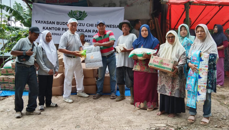 Senyum bahagia warga setelah menerima paket bantuan dari relawan Tzu Chi Padang.