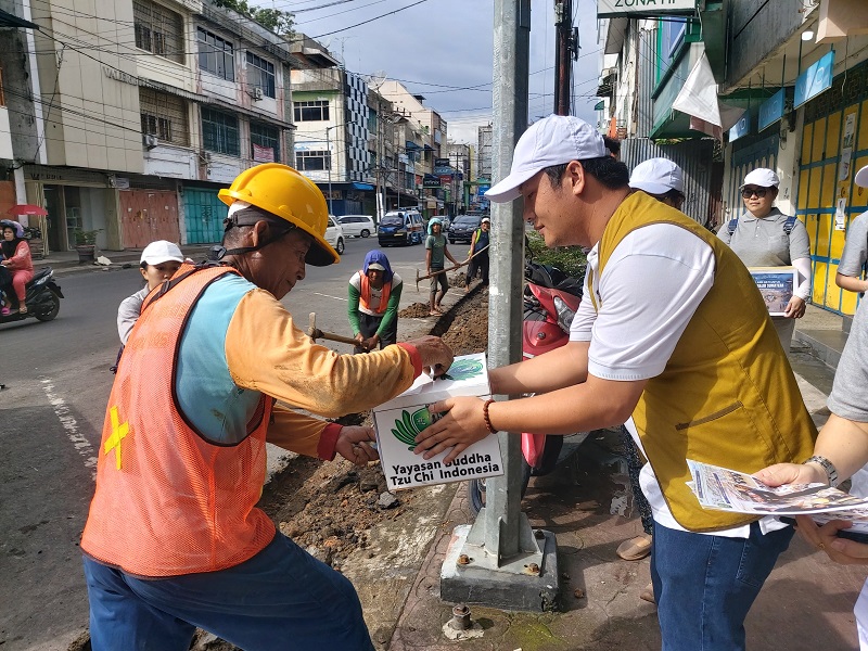 Relawan Tzu Chi menyambut hangat donasi yang diberikan oleh Natal Siahaan.