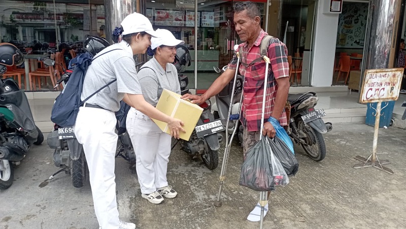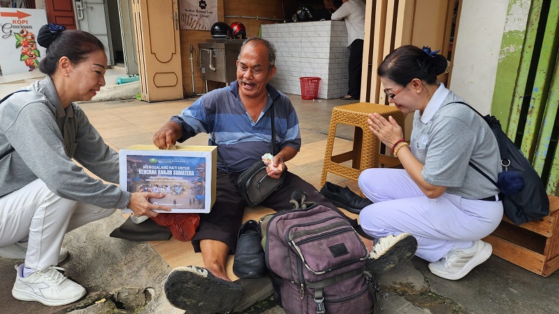 Dengan penuh kehangatan relawan Tzu Chi menerima donasi dari Maruf Sirait yang berprofesi sebagai penyemir sepatu. Di Tengah kesederhanaanya Maruf Sirait tetap ingn bersumbangsih untuk meringankan penderitaan warga yang terdampak banjir di Sumatera.