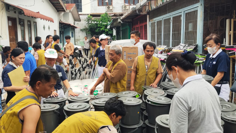Relawan Tzu Chi menyalurkan bantuan berupa 75 karung beras berisi 5 kilogram, 480 botol air mineral, 180 bungkus biskuit, serta lebih dari 600 perlengkapan kebersihan untuk kebutuhan pascabanjir.