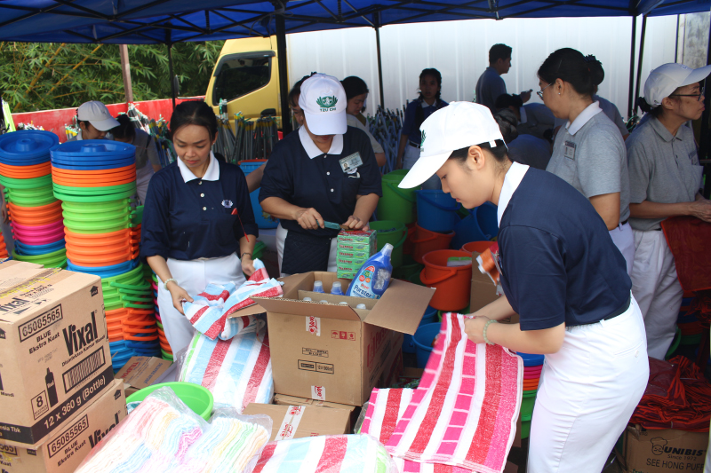 Jelang pembagian pada 5 Desember 2025, para relawan terlebih dahulu melakukan survei lokasi dan membagikan kupon kepada warga setempat. Selain itu, relawan juga meminta izin kepada pihak Wihara Nam Hai Kwan Im untuk menggunakan lahan parkir wihara tersebut untuk pembagian paket bantuan.