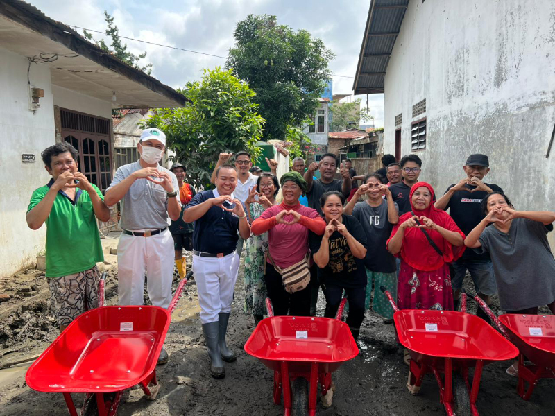 Adapun paket bantuan yang disalurkan meliputi beras 5 kg, air minum, roti, sarung, handuk, ember, selimut, sapu, sikat lantai, karbol, empat kereta sorong, dan sabun. Warga penerima bantuan mengaku sangat terbantu dengan hadirnya paket-paket tersebut.