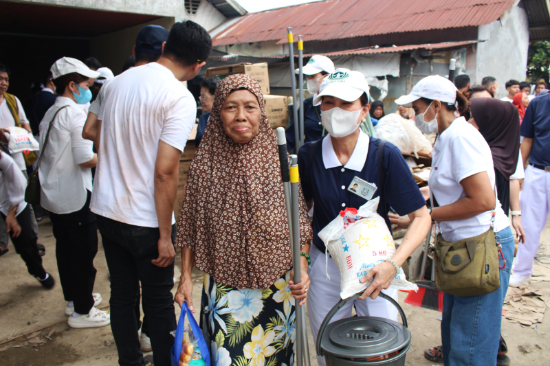Salah satunya adalah Rina (60), warga Gg. Karang Sari yang sehari-harinya adalah ibu rumah tangga. Ia tinggal bersama 13 anggota keluarganya dalam satu rumah. Dengan suara bergetar, ia menyampaikan rasa terima kasihnya kepada Tzu Chi “Saya sangat berterima kasih kepada Tzu Chi yang sudah memberikan bantuan dan makanan kepada kami. Walaupun para relawan tidak mengenal kami, tetapi mereka begitu perhatian kepada warga yang terdampak banjir. Saat banjir terjadi, kami sampai tidak punya makanan. Jika ada sedikit makanan, kami saling berbagi hanya beberapa suap untuk keluarga. Saya berharap relawan Tzu Chi selalu diberi semangat untuk terus menyebarkan kebaikan kepada siapa pun.”