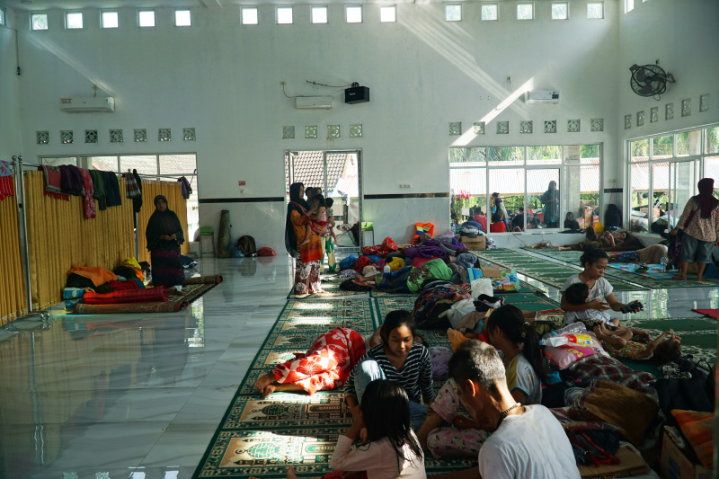 Warga mengungsi di Masjid Nurul Islahiyah, tempat bantuan disalurkan.