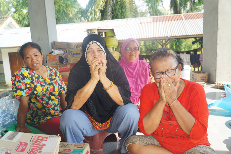 Khairani (65), warga Gg. Jambu, juga mengungsi di masjid sejak 24 November 2025 karena air yang terus naik. Dengan mata berkaca-kaca, ia mengenang kejadian itu.