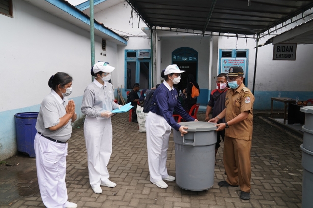 Sebanyak 7 buah ember besar diberikan kepada Kepala Desa Tanjung Selamat di Aula Kantor Desa Tanjung Selamat.