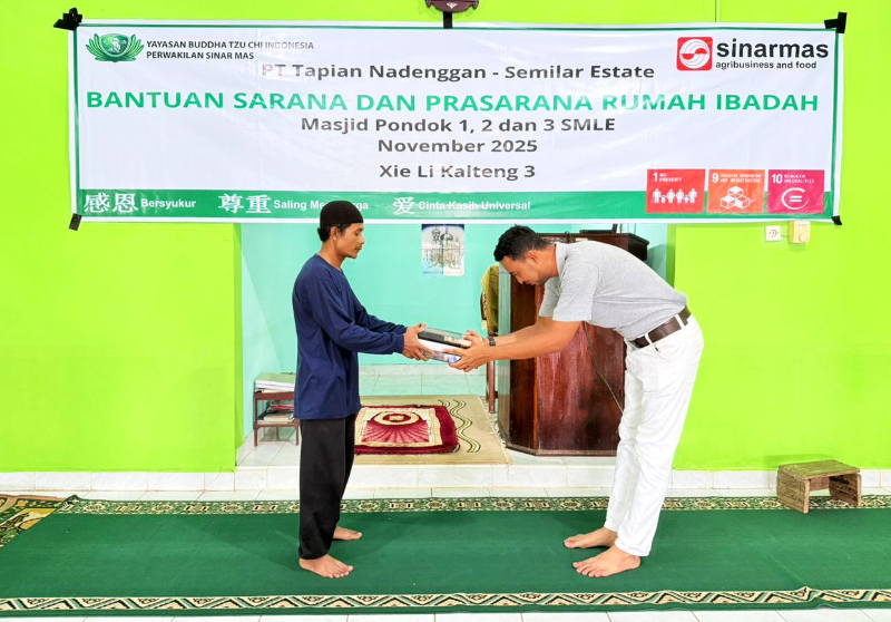 Jumat berkah dijalankan relawan Tzu Chi Sinar Mas komunitas Xie Li Kalimantan Tengah 3 Utara melalui penyaluran bantuan untuk mendukung kenyamanan beribadah di masjid pada Jumat, 14 November 2025. Bantuan ini ditujukan untuk tiga masjid yang berada di Pondok 1, 2, dan 3 Semilar Esatate, Kecamatan Danau Seluluk, Kabupaten Seruyan, Kalimantan Tengah. Bantuan yang diserahkan meliputi 6 buah kitab suci dan 9 buah mukena untuk ketiga masjid tersebut.