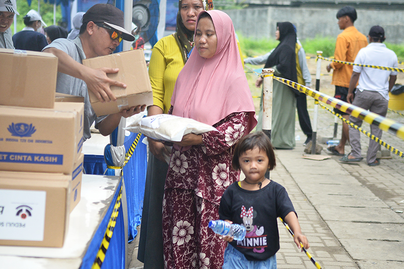 “Berat banget tapi harus dijalanain, anak-anak yang membuat saya harus kuat dan berjuang biar mereka tetap sekolah sampai selesai, sekarang apa saja saya kerjain. Alhamdullilah saya di percayain buat dagang di warung kakak saya, bikin gado-gado. Lumayan ada penghasilan dari situ untuk hidupin anak-anak,” ungkap Cici, salah satu penerima bantuan sembako.