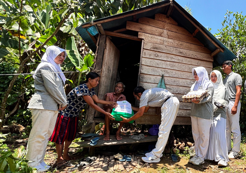 Paket sembako dan pemeriksaan kesehatan yang dilakukan menjadi tali silaturahmi antara relawan dan para lansia.