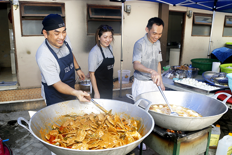 Kegiatan kemanusiaan ini dilaksanakan dengan dukungan relawan dari Smartfren, Sinar Mas Land, dan alumni Tzu Chi University of Science and Technology (TCUST). Relawan berbagi tugas untuk mendukung dapur umum ini, seperti menyiapkan bahan masakan, menyiapkan kemasan makanan, memasak, dan membagi makanan. Selain itu, relawan juga memberikan hiburan untuk anak-anak pencari suaka dengan bermain, bernyanyi, menari, dan belajar literasi bersama serta membagikan 50 bingkisan cinta kasih.