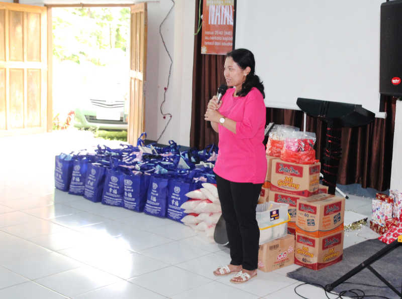 Henny Laurence menyampaikan terima kasih kepada para donatur, relawan, pengurus, dan anak-anak panti atas kesempatan bagi Tzu Chi Makassar untuk berbagi kasih dan merayakan sukacita Natal 2025 bersama.