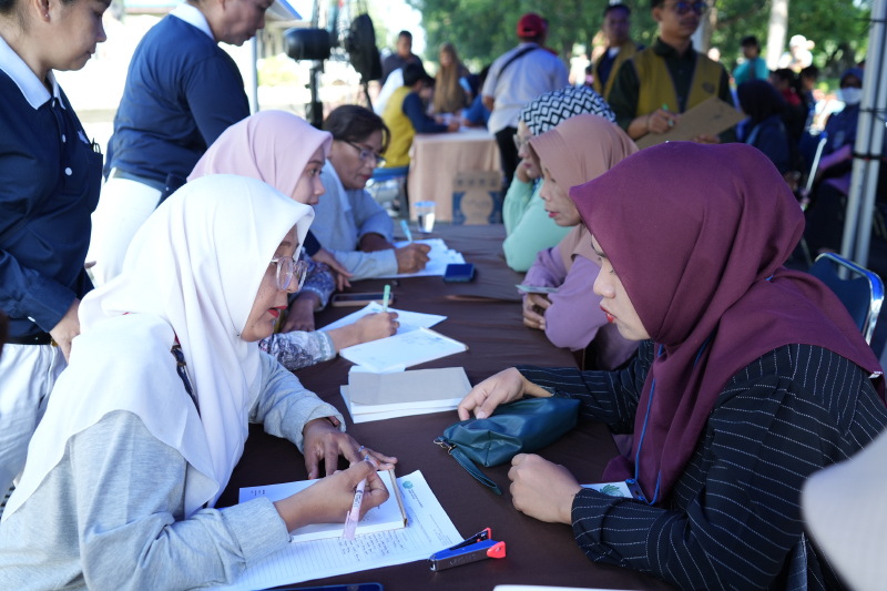 Proses pendaftaran dalam bakti sosial di aula Bunut PT Indah Kiat Pulp and Paper Perawang.