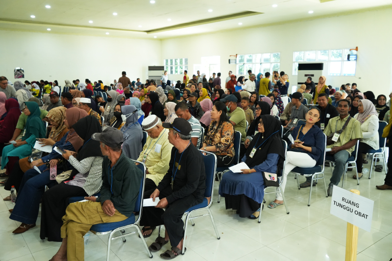 Warga dengan tertib menunggu pemeriksaan yang dilakukan tim dokter dari TIMA Pekanbaru.