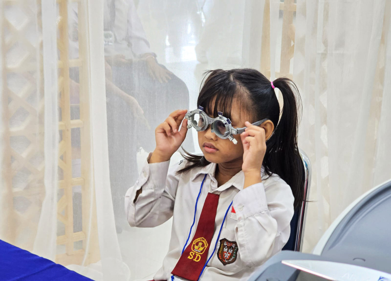 “Ketika skrining kemarin kami juga menemukan satu anak perempuan yang menangis begitu tahu jika minusnya sudah tinggi dan silinder. Dia merasa malu dan takut diejek sama teman-temannya karena masih kecil sudah pakai kacamata. Jadi kita bantu tenangkan dia. Dari sini orang tuanya jadi tahu ternyata anaknya ada masalah penglihatan,” sambung Irmai Sastri.
